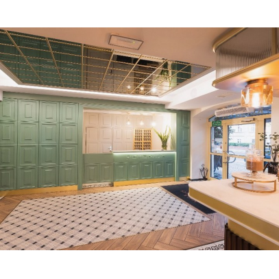 Aufzug, Rezeption, Bar, Café, Speisesaal, Spa, Wintergarten.
